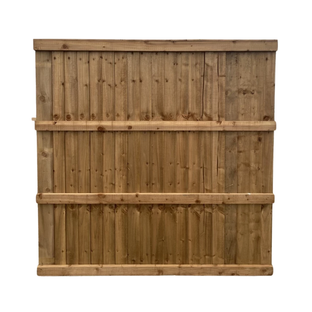 Feather edge closeboard panels are fence panels that have been formed from 18 vertical feather edge boards, each partially overlapped by one inch and fixed to 4 rear horizontal supporting backing rails. Measuring 6ft/1.83m each, these feather edge fence panels are best suited to our or . We also supply , , and .