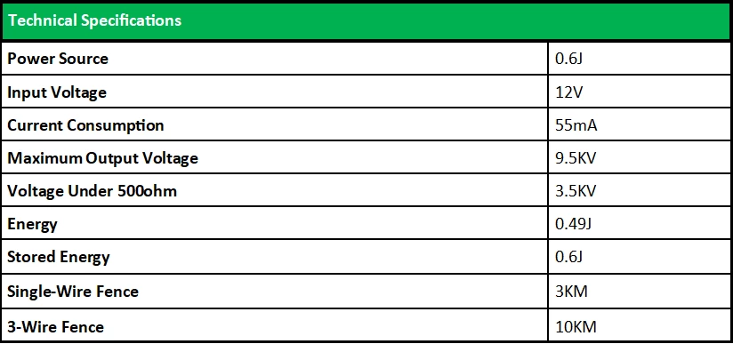 The FORTIS SG050 energiser is very quick and easy to install. This energiser is leightweight and portable so, it’s very easy to transport making it a must have choice for temporary electric fences in wide open areas or on rented land where a permanent fence insn’t required. Our energiser can power a single-wire electric fence for approximately 10km and a 3-wire fence for approximately 3km.