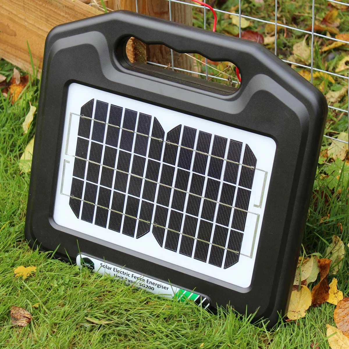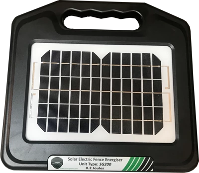 The solar panel can charge a flat battery in three days if the energiser is switched off and there is adequate sunlight. When fully charged, the battery will power the energiser for over three weeks with no sunlight. This means that the SG200 energiser is low-maintenance and will need little interference other than the usual routine checks of the fence.