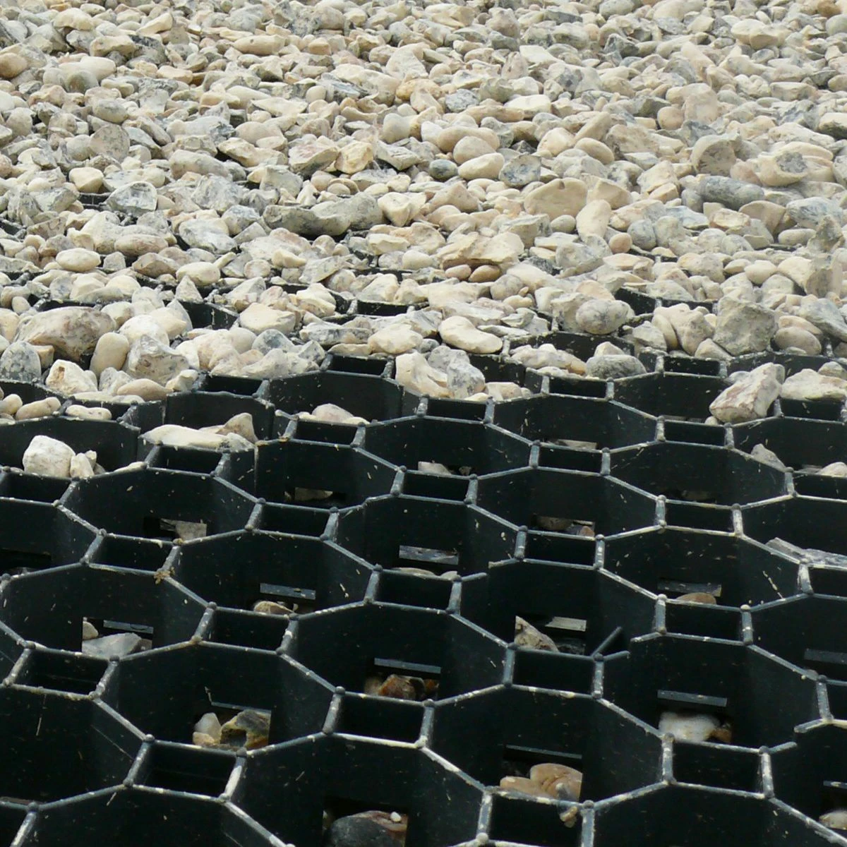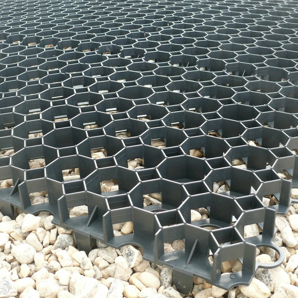 - Unique open cell structure allowing effective retention of gravel